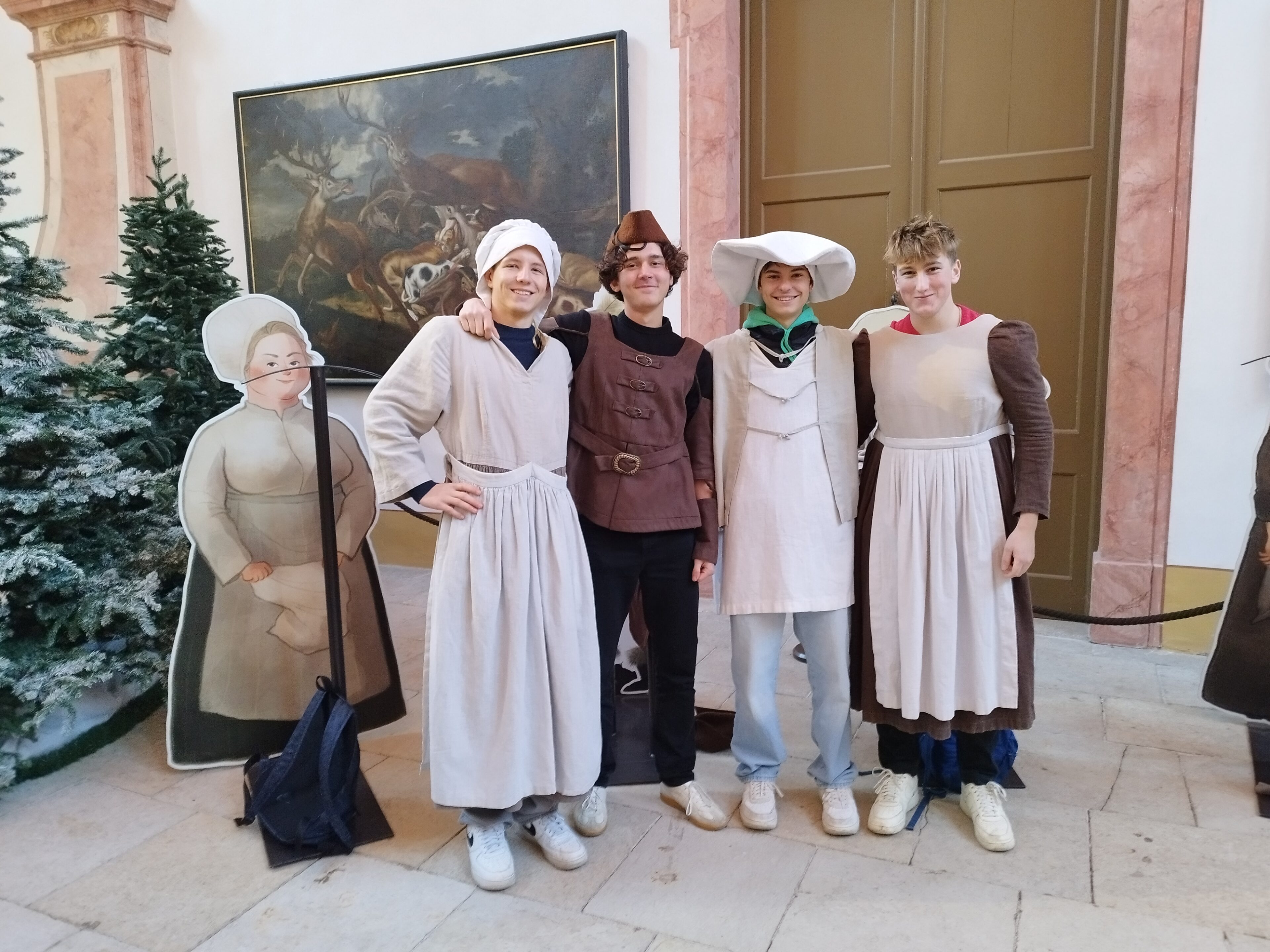 Druhý den byl velmi pestrý. Po dvou vyučovacích hodinách ve škole, během nichž jsme si mimo jiné zahráli na ukulele nebo se zapojili do výuky španělštiny, jsme se autobusem vydali směrem Moritzburg. Tento barokní zámek je známý především díky filmovému zpracování pohádky Tři oříšky pro Popelku, které se zde natáčelo. Díky pěknému počasí jsme měli možnost vyfotit se u ikonického schodiště a také navštívit výstavu. Nejvíce nás zaujala možnost vyzkoušet si některý z filmových kostýmů. A všude přítomné oříšky si zde můžete pořídit za „lidových“ tři eura padesát.