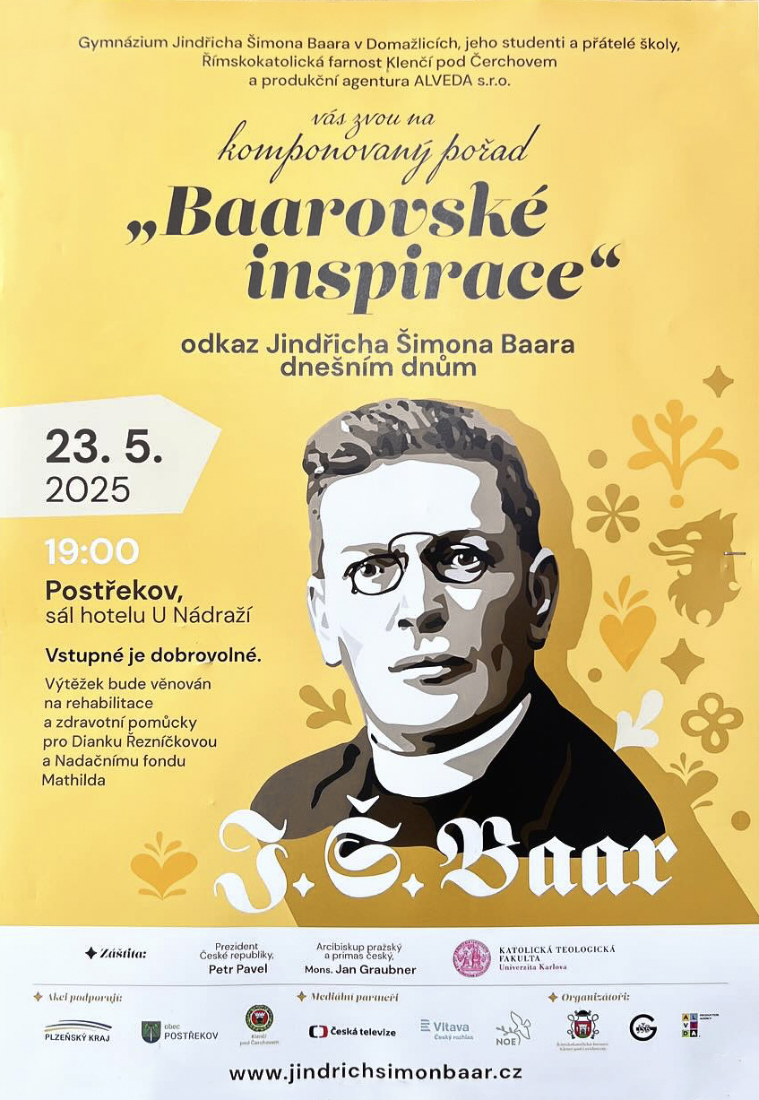 Srdečně Vás zveme na slavnostní komponovaný pořad věnovaný 100. výročí úmrtí spisovatele, kněze a bývalého studenta naší školy – Jindřicha Šimona Baara.