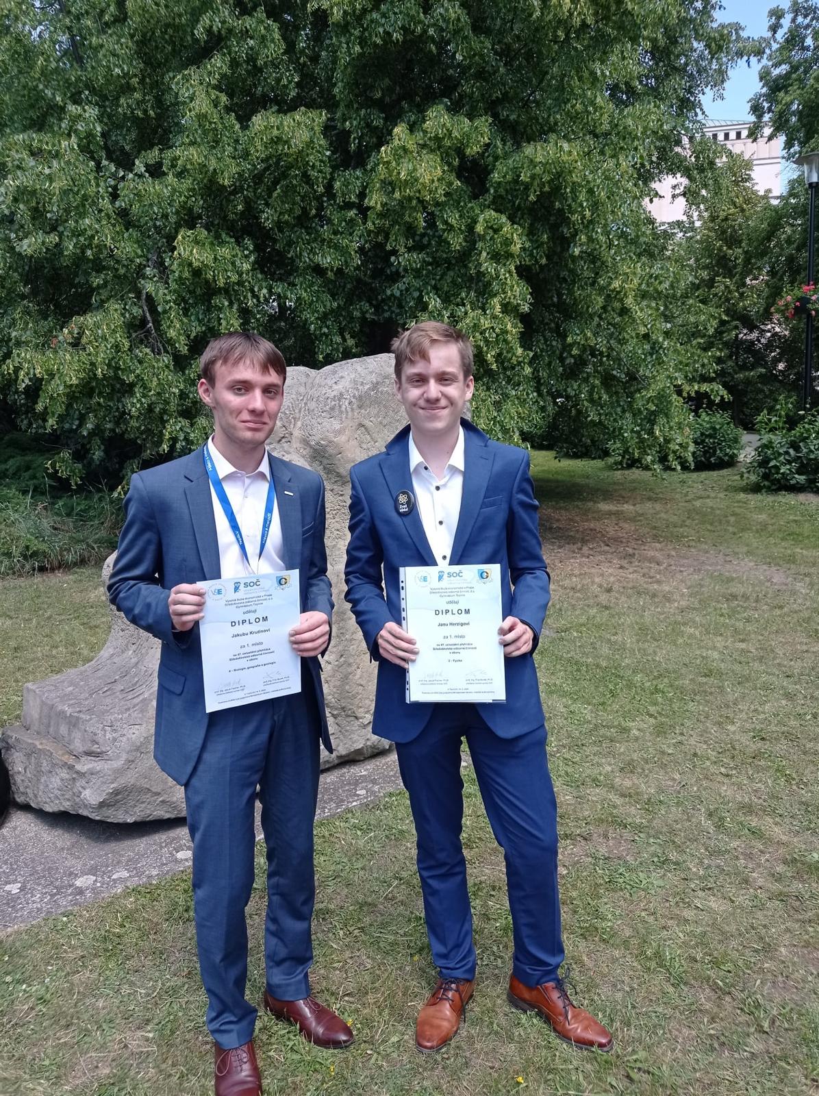 V Teplicích se uskutečnilo celostátní kolo SOČ (Středoškolské odborné činnosti). Díky svému vítězství v krajském kole tam postoupili také dva reprezentanti našeho gymnázia – čerstvý absolvent osmiletého studia Jakub Krutina v oboru biologie a žák 6.ročníku osmiletého studia Jan Herzig v oboru fyzika.