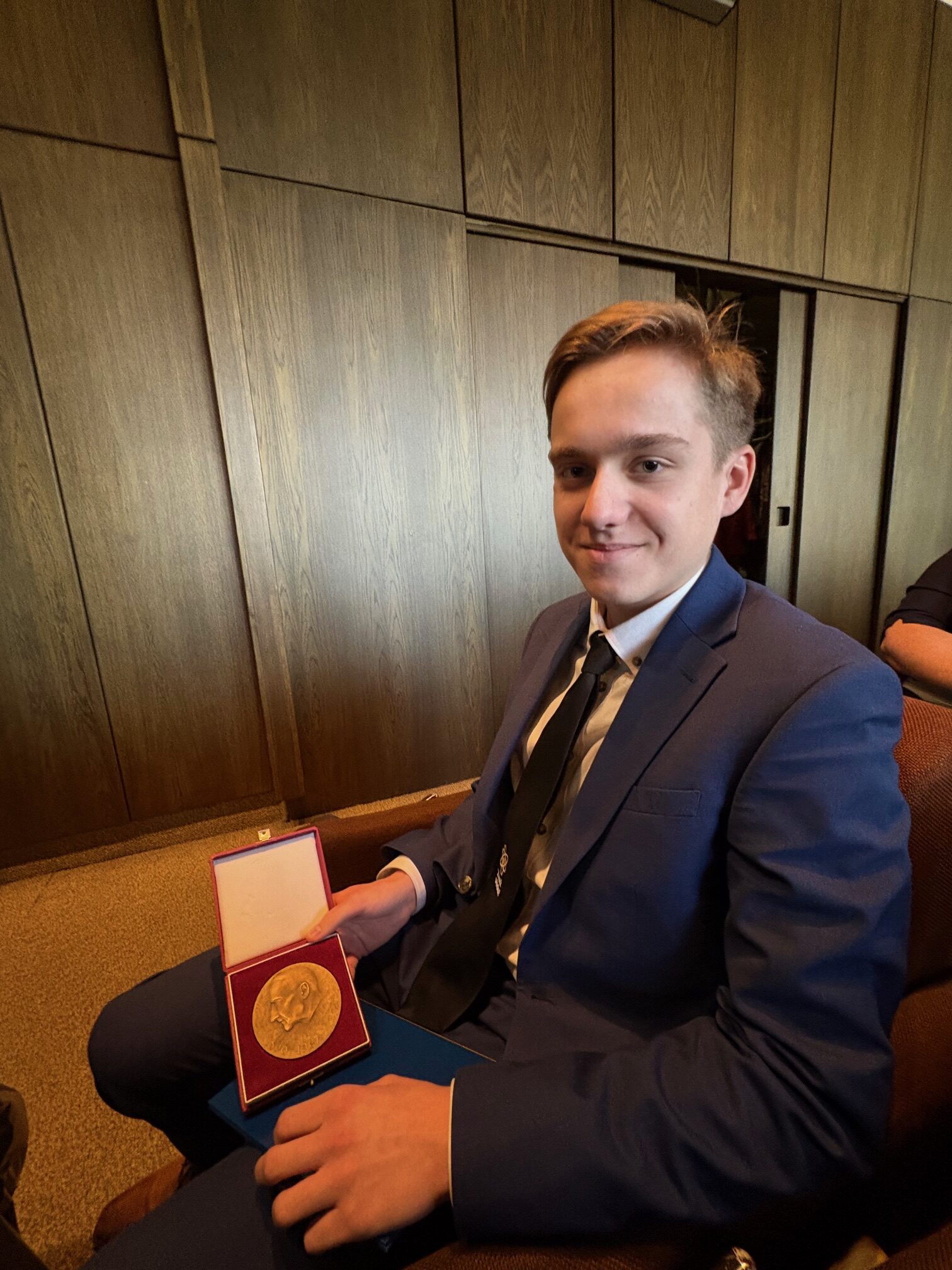 Talentovaní středoškoláci, kteří v uplynulém roce reprezentovali naši republiku na 19 mezinárodních olympiádách a soutěžích v přírodovědných a technických oborech, byli počátkem prosince oceněni na půdě Senátu. Akci inicioval senátor Jiří Dušek za podpory předsedy Senátu Miloše Vystrčila. Mezi oceněnými byl také náš student Jan Herzig (7.8).