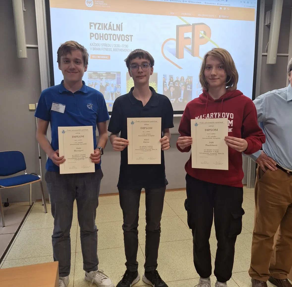 Poté se přesunul na Slezskou univerzitu v Opavě, která hostila celostátní kolo astronomické olympiády kategorie CD. Zde obsadil druhé místo a odměnou mu je pozvání na astronomický workshop s mezinárodní účastí, jenž se uskuteční koncem června.