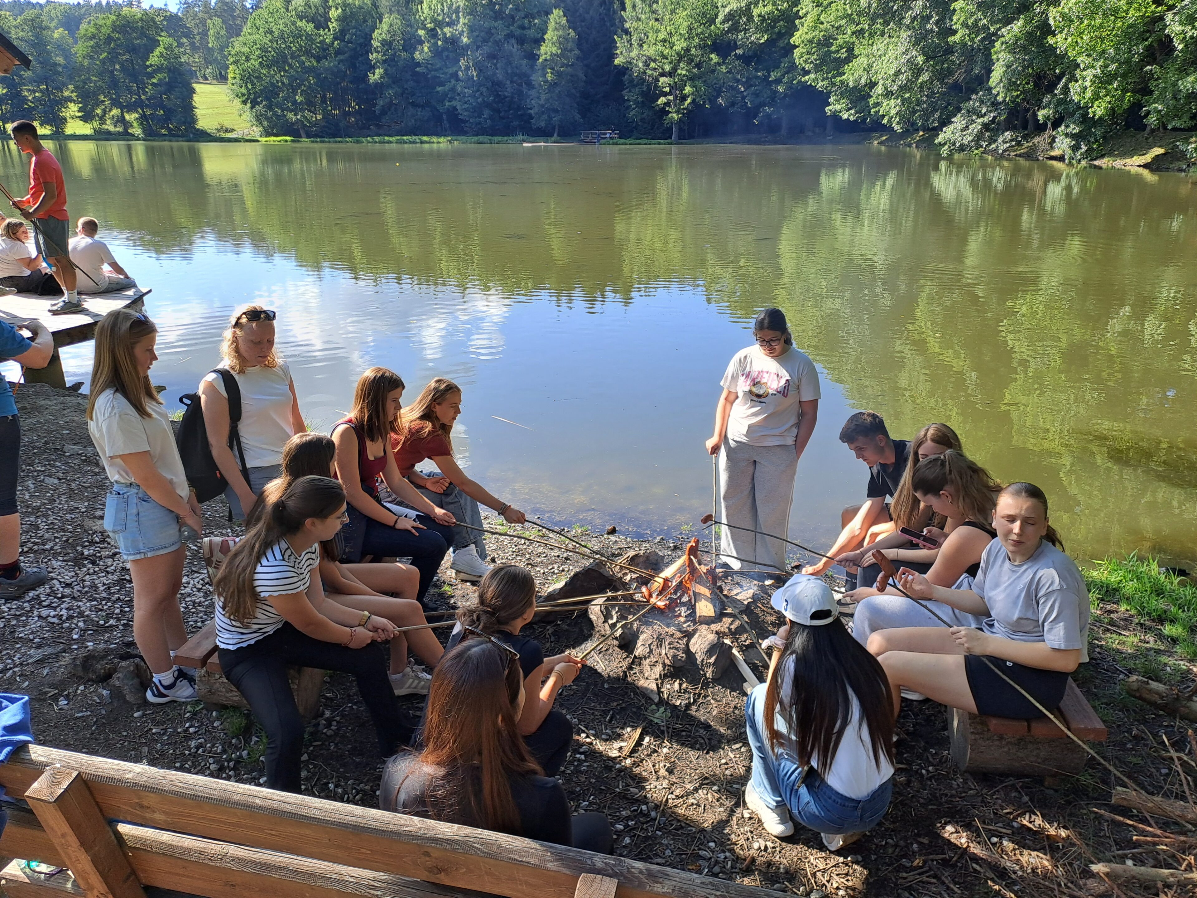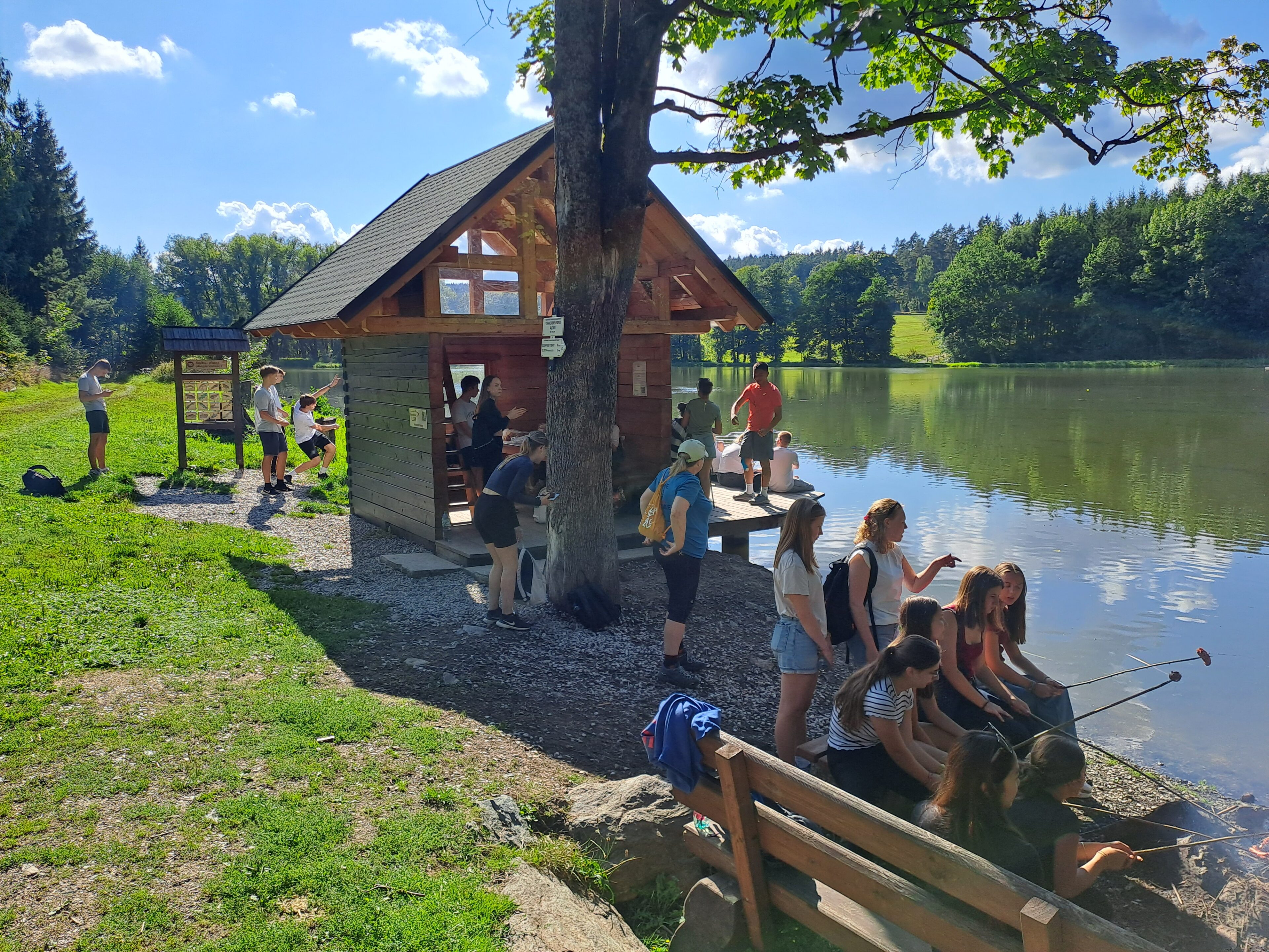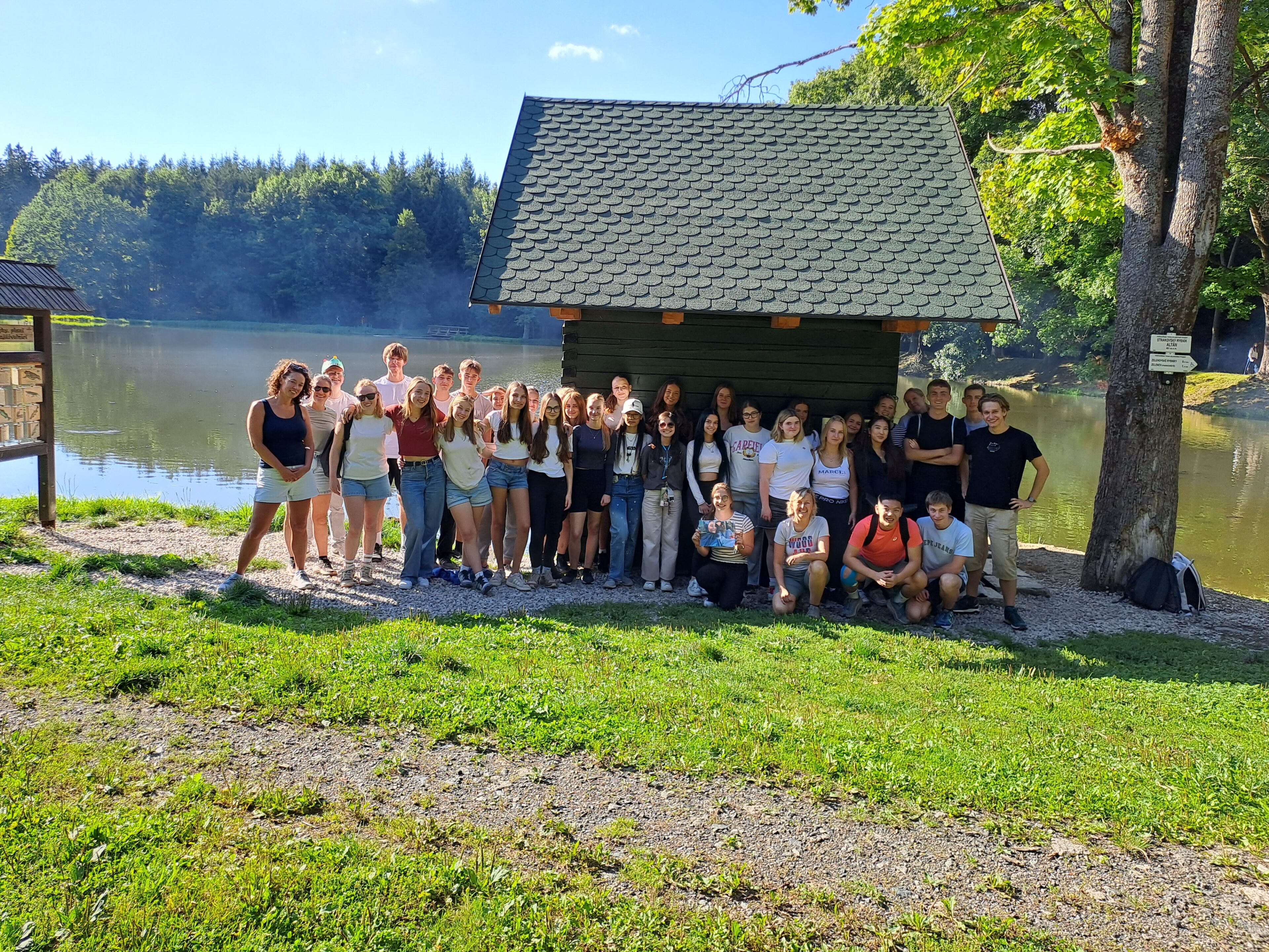 V sobotu odpoledne jsme se všichni sešli u školy a vyrazili na procházku na Zelenov. Tady jsme si opekli buřty a představili našim hostům celotýdenní hru „My secret friend“. Na zpáteční cestě jsme se zastavili na Vavřinečku a obdivovali výhled do okolí, který byl díky slunečnému počasí úžasný.