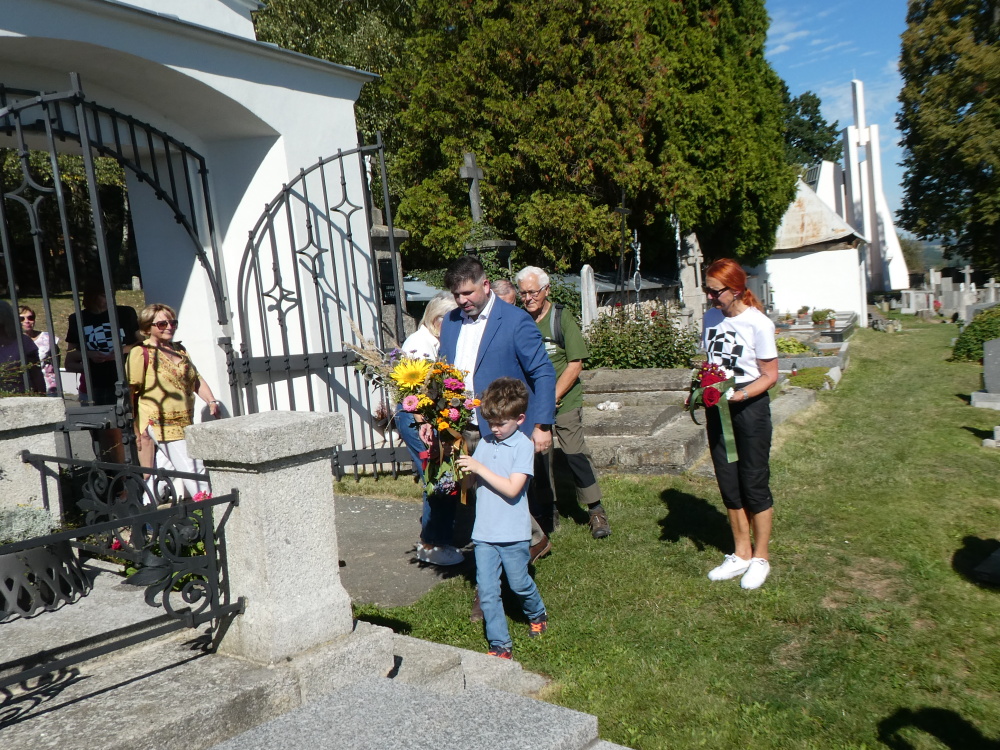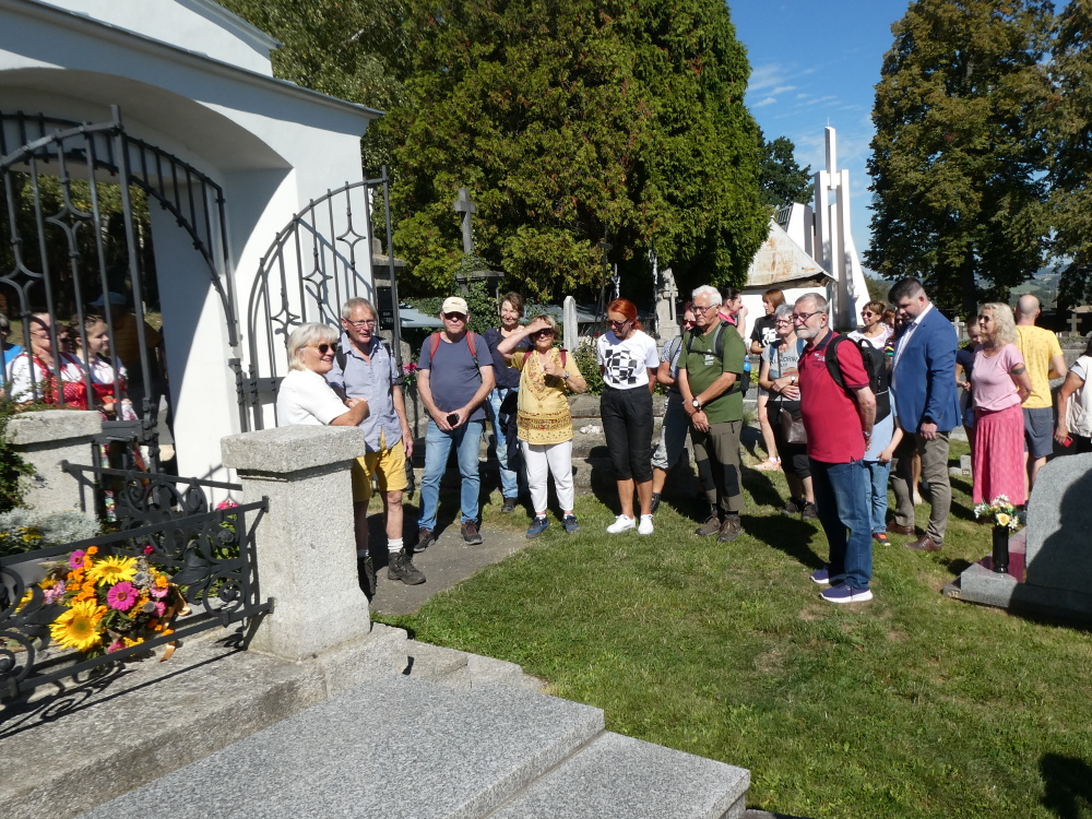 Za mimořádně příjemného počasí se turisté z obou stran hranice sešli nejdříve na klenečském hřbitově, kde vyslechli krátké proslovy připomínající jednak tradici pouti, jednak osobnost Jindřicha Šimona Baara, a jeho památce se pak následně poklonili u zdejšího hrobu. Celou tuto krátkou slavnost provázely klasické chodské písně v interpretaci mužského pěveckého sboru Haltravan a dua, maminky a dcery, naší studentky, „dívčat“ Tremlových.