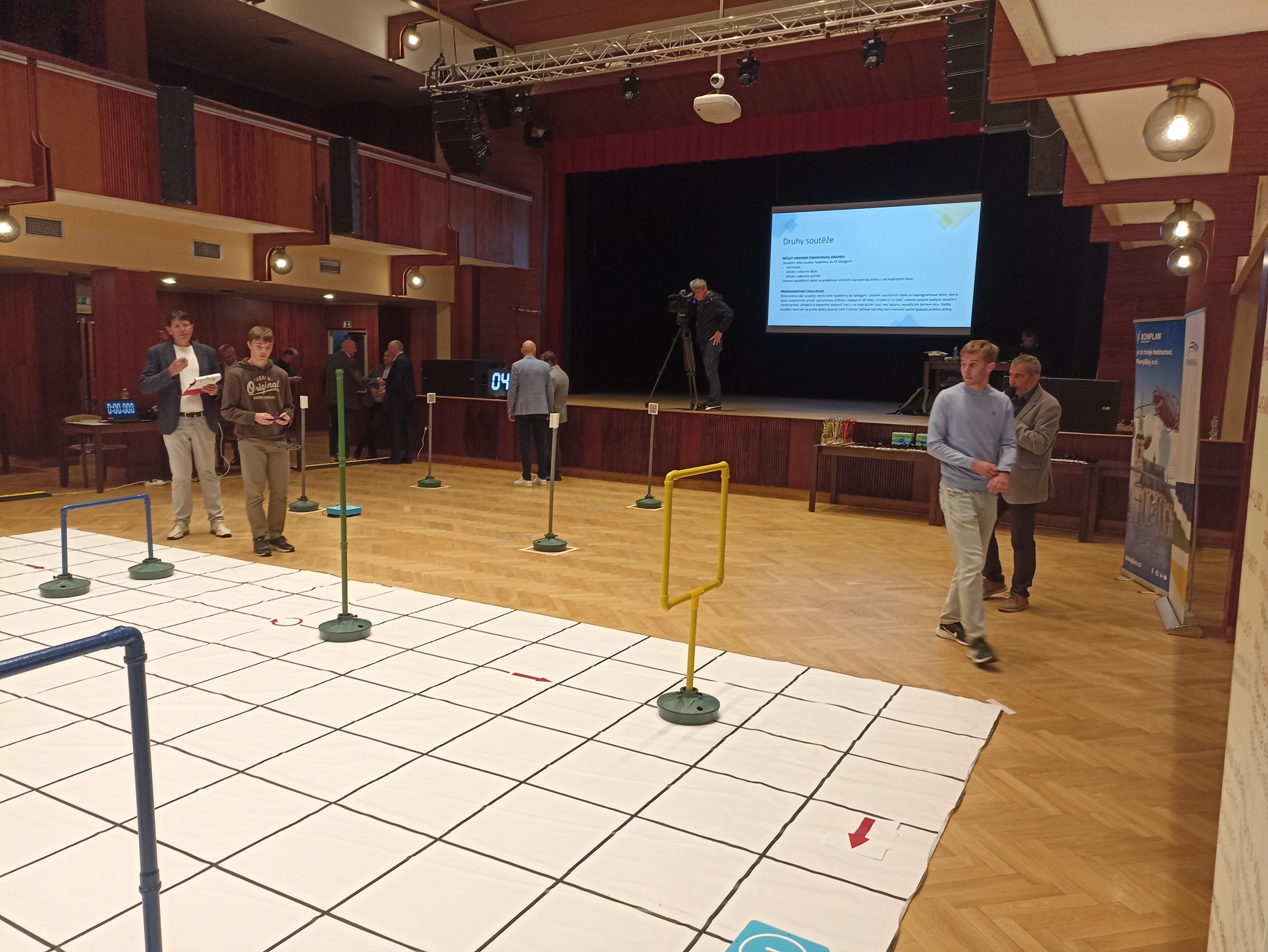 Úkolem soutěžních týmů bylo prolétnout dronem stanovenou dráhu v co nejkratším čase a překonat nástrahy překážek.
