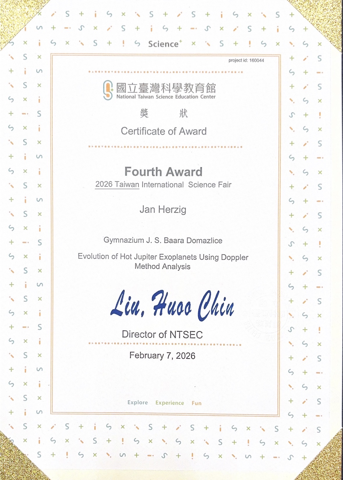 „Moje práce se zabývala výzkumem exoplanet, což jsou planety obíhající jiné hvězdy, než je naše Slunce. Práci jsem zpracovával pod vedením Jiřího Žáka, Ph.D. z Astronomického ústavu Akademie věd ČR,“ objasnil nám její téma Jan Herzig, navzdory svému mládí již fundovaný astronom.