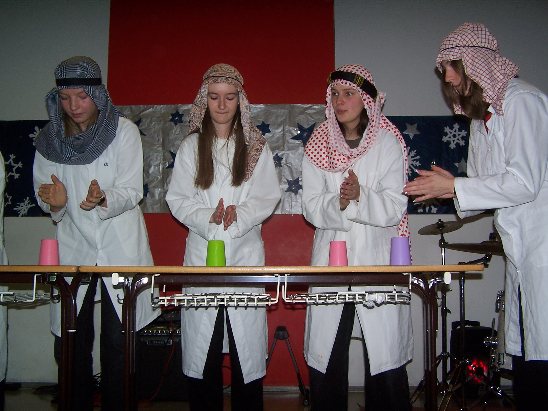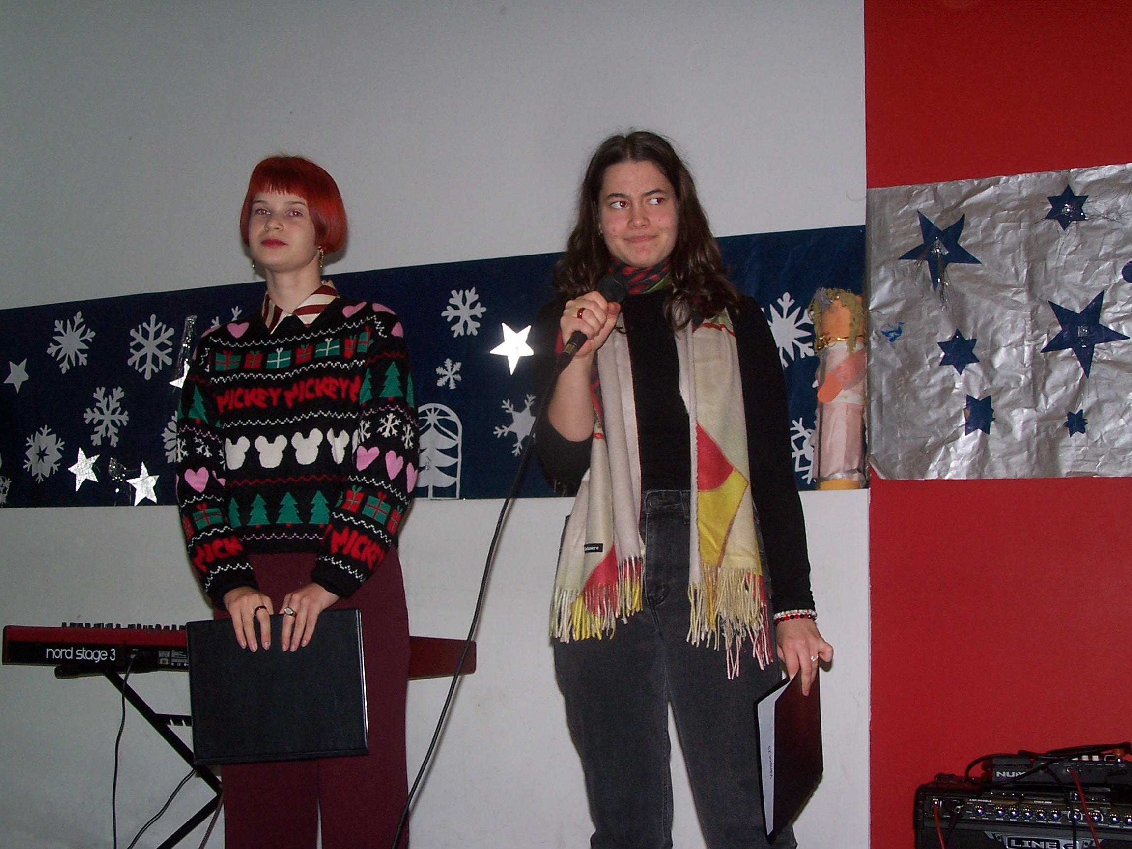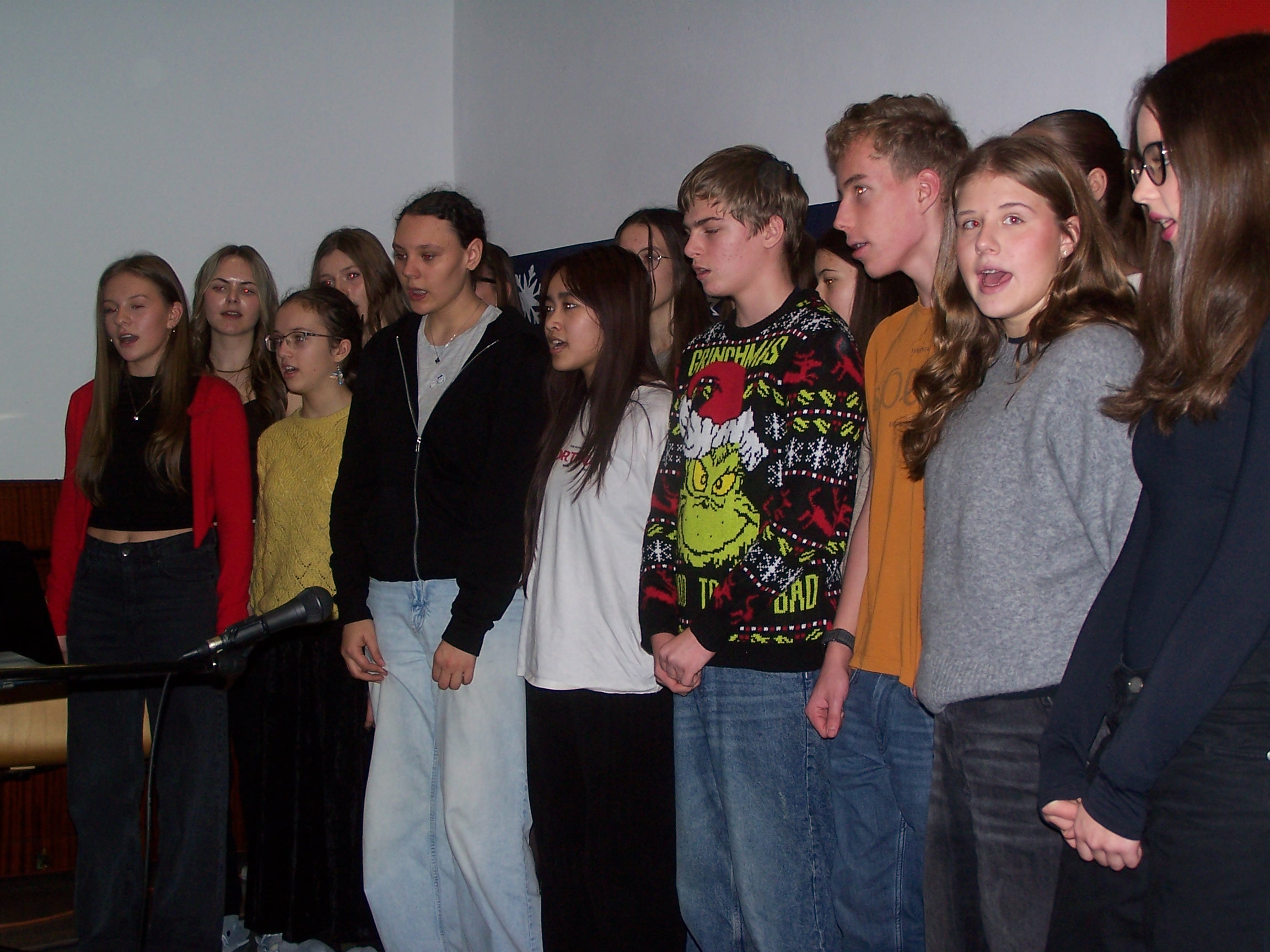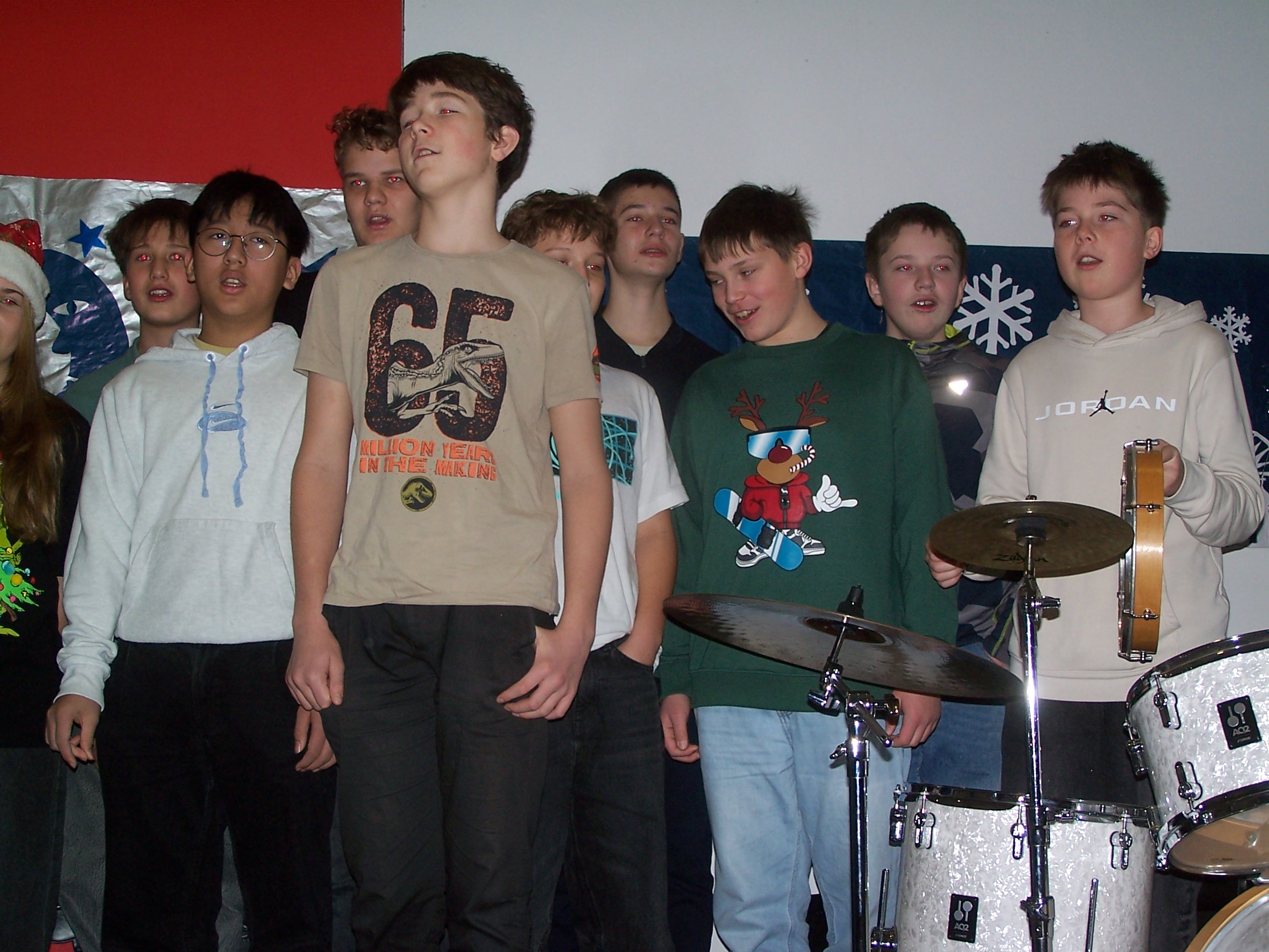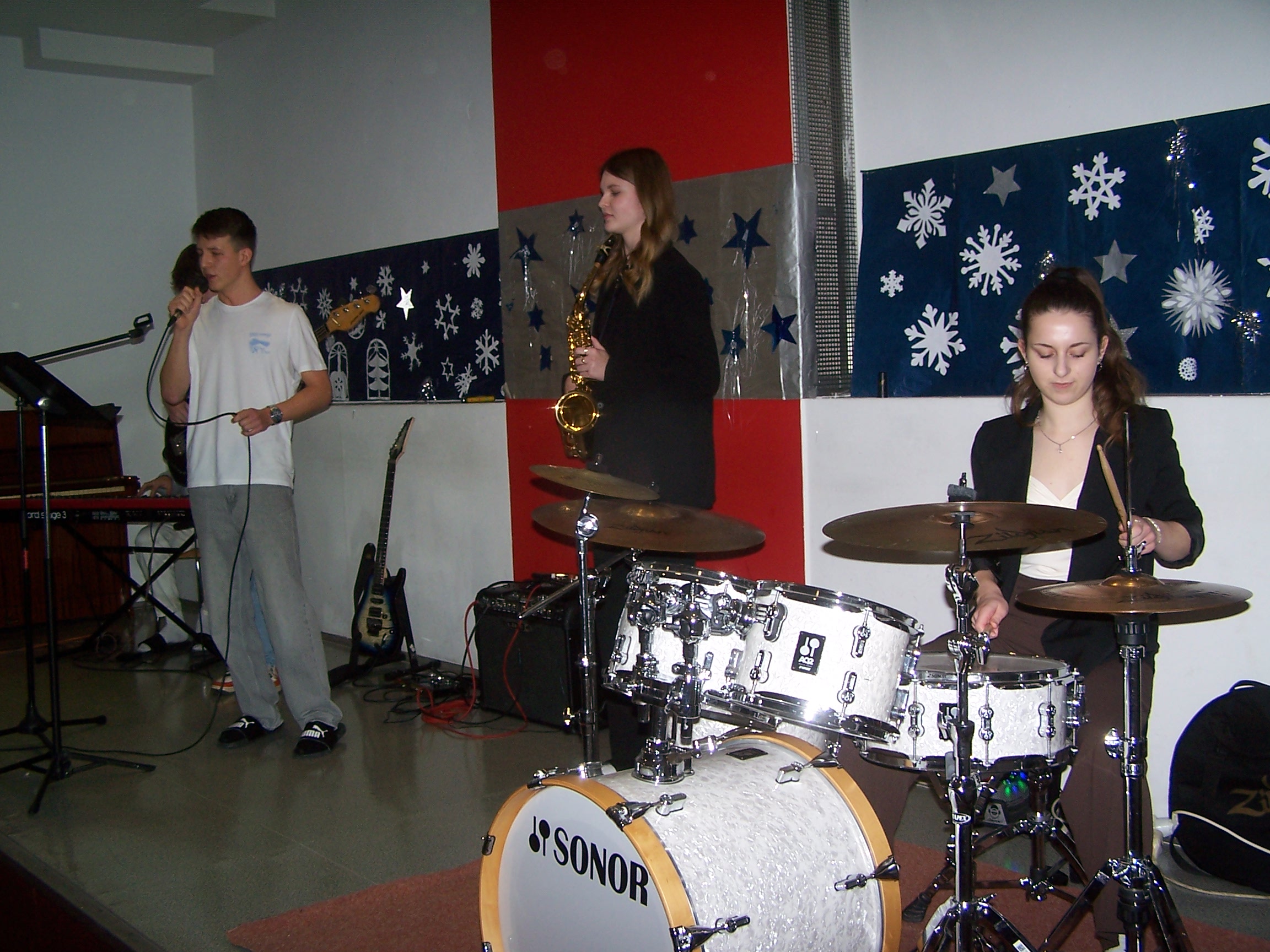 Talentovaní zpěváci a muzikanti z různých ročníků navodili adventní atmosféru při třech vánočních koncertech. Kromě klasických vánočních melodií zazněly i moderní rytmy, nechyběla ani taneční vystoupení či scénka divadelního kroužku. Vystoupení učitelů, jichž bylo tentokrát ještě víc než obvykle, je věnován samostatný příspěvek.