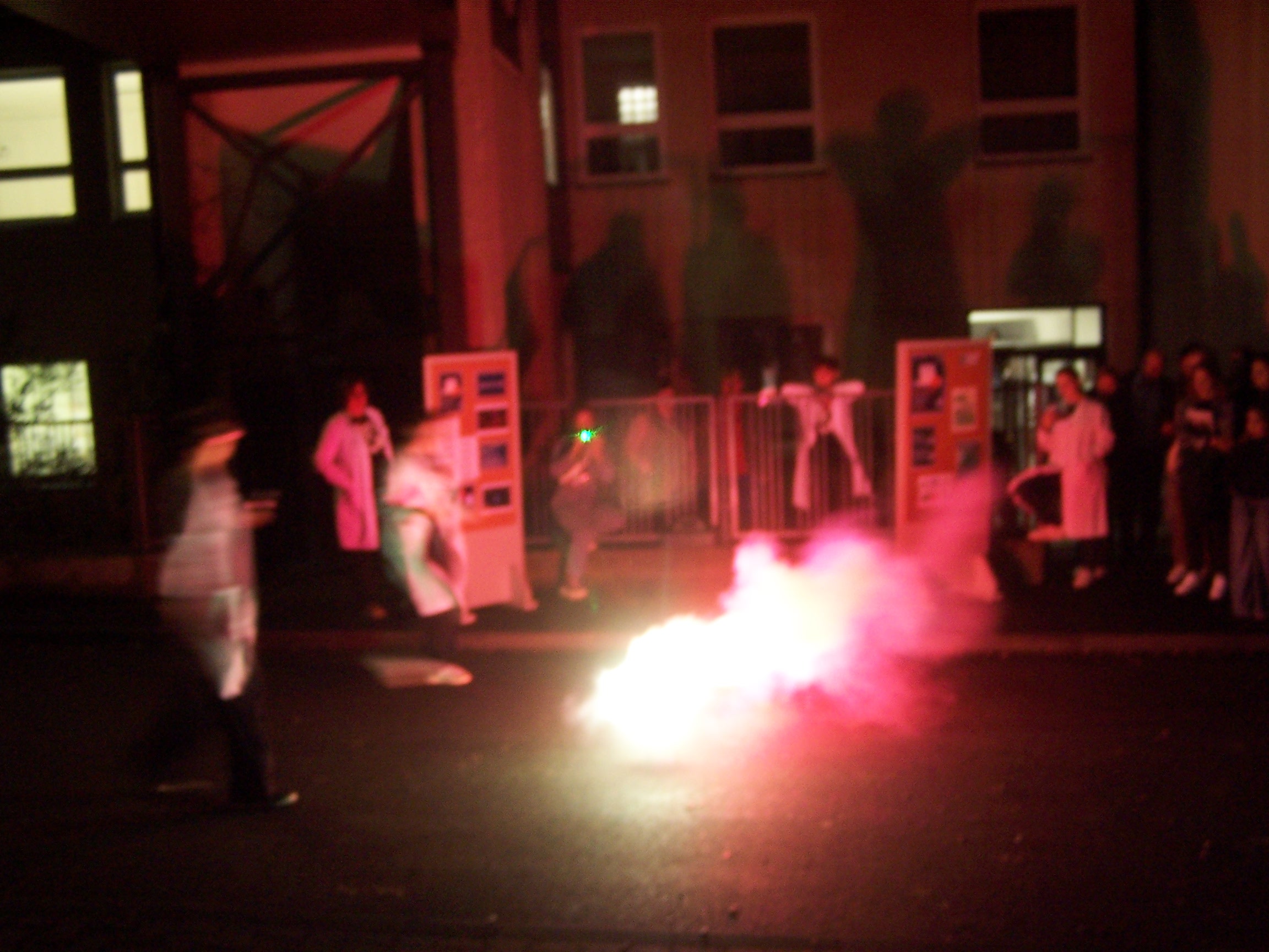 Zejména po soumraku byly bengálské ohně magnetem nejen pro návštěvníky Noci vědců, ale i pro náhodné kolemjdoucí vracející se z nákupu v Kauflandu.