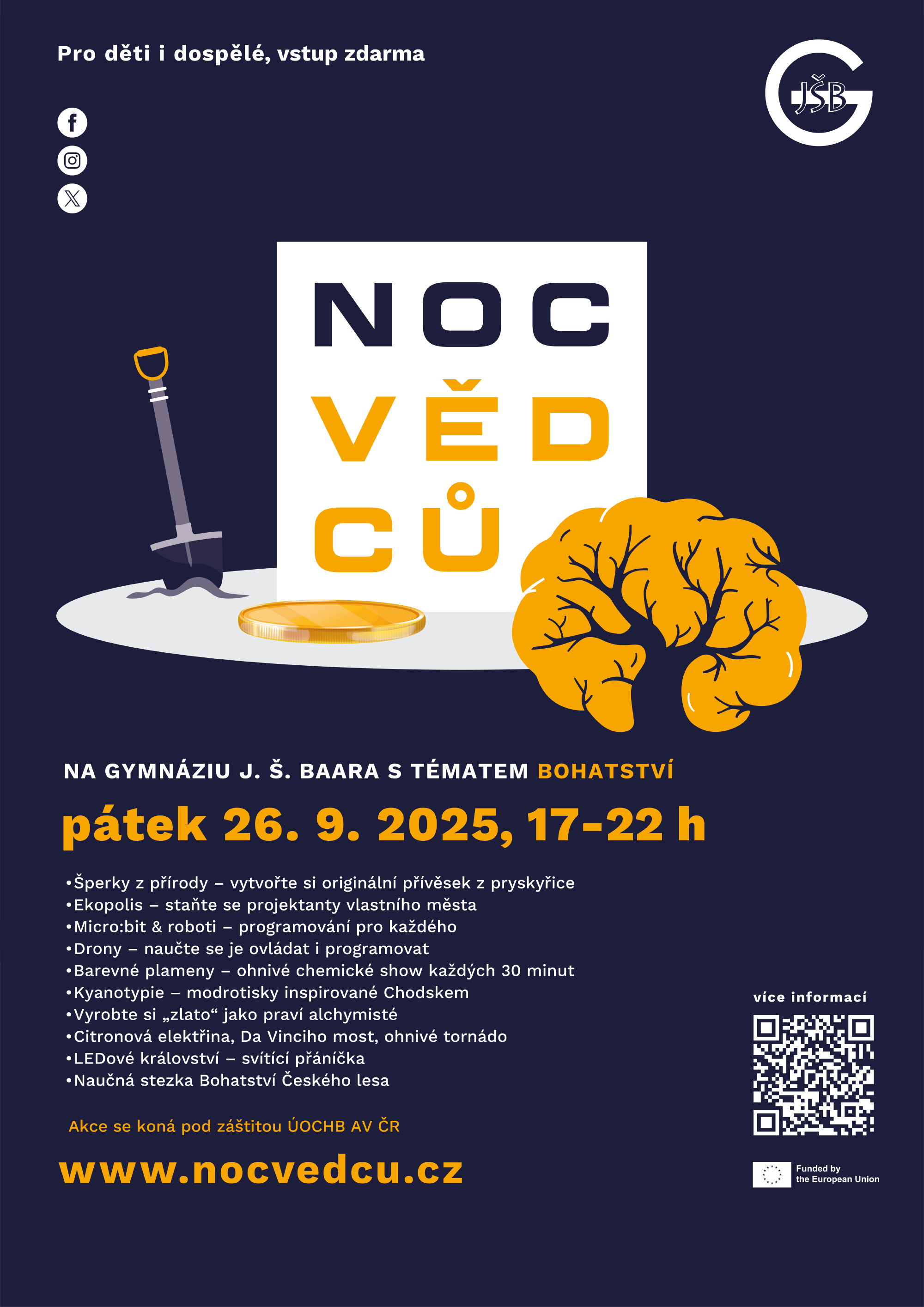 Naše škola se v pátek 26. září od 17 do 22 hodin zapojí do prestižní celostátní akce nazvané Noc vědců.