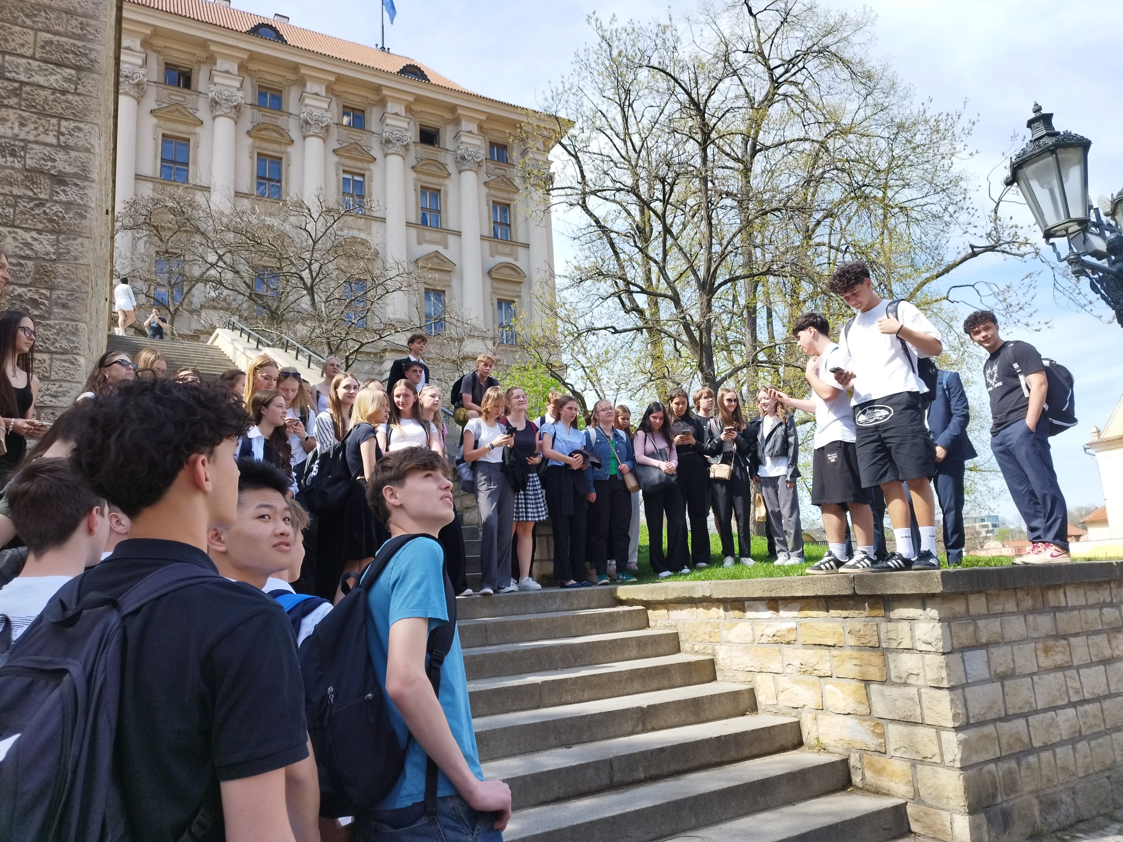 V rámci historicky laděné procházky jsme si prošli Prahu od Černínského paláce, přes Pražský hrad, Malou Stranu a přes Karlův most až k Obecnímu domu. Cestou nás čekala řada zastávek, během kterých jsme si formou referátů popsali historii a stavební sloh významných pražských památek a staveb.