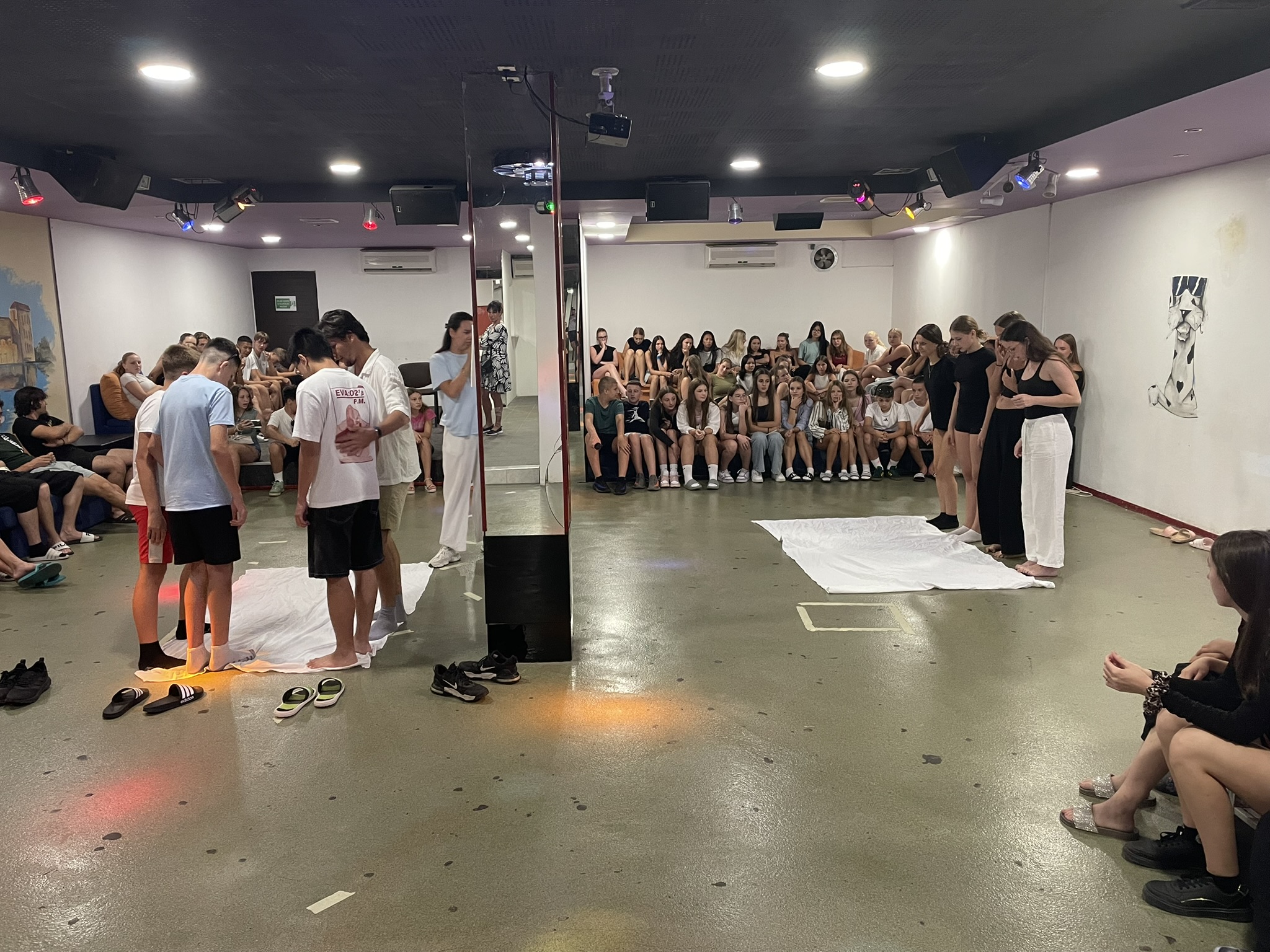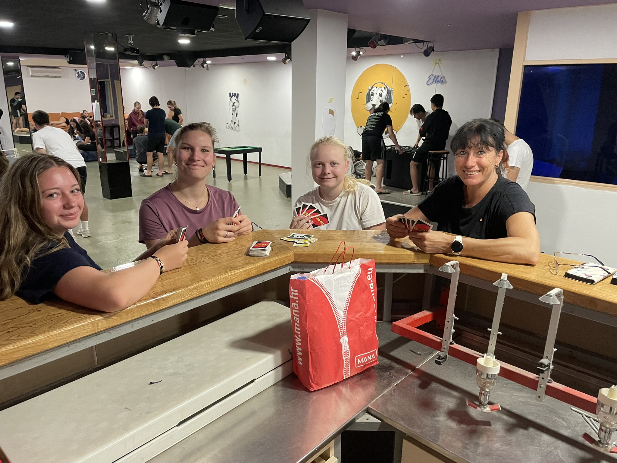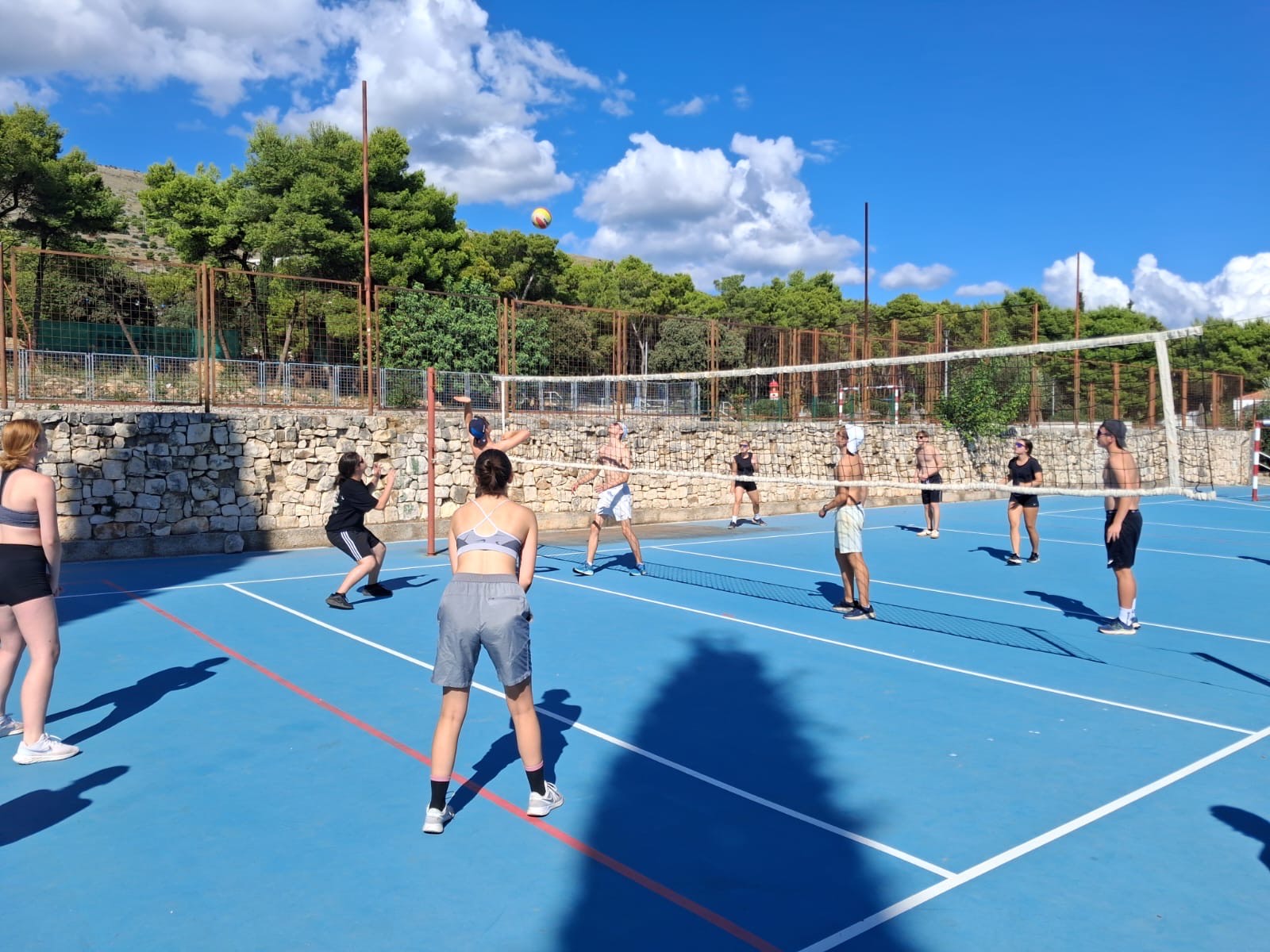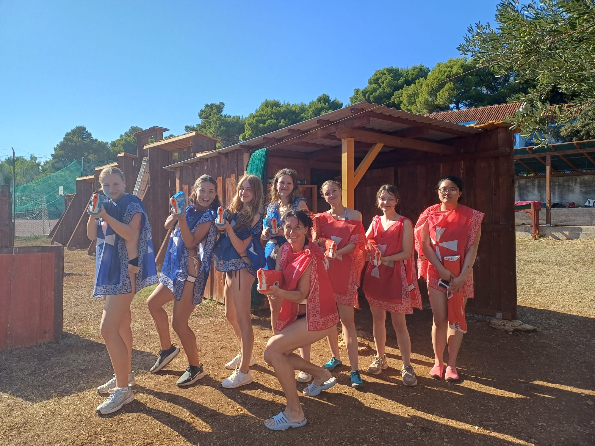 Než studenti dostali klíče od svého ubytování, byli pracovníky Eklaty Medeny poučeni, jak se mají chovat, kdy je noční klid, jaká jsou další pravidla, a hlavně kdy a kde je snídaně, oběd a večere, kterou jsme náš pobyt začali. Jídlo opět formou švédských stolů bylo luxusní, to se dalo poznat podle toho, kolikrát si někteří chodili přidávat (včetně učitelů) J Po ubytování a vybalení věcí byl krátký čas na aklimatizaci na chorvatské ovzduší a prohlídku moře. Studenti se také od svých vedoucích dozvěděli, kdy budou ranní rozcvičky a jaké a co je následující den bude čekat. Ne všichni byli nadšeni. Měli jsme 3 týmy holek a 3 týmy kluků.