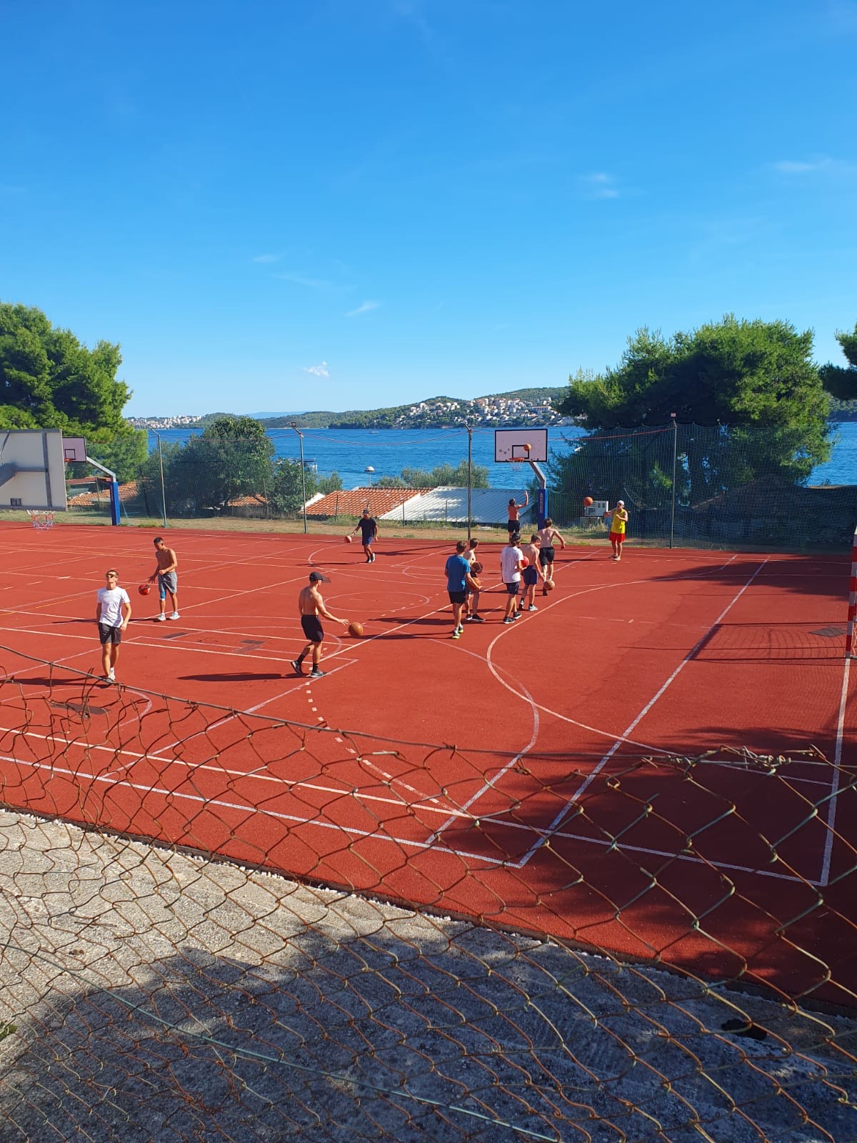 Sportovní aktivity byly opět velmi pestré: basketbal, volejbal, fotbal, softbal, speedminton. Nově byl do kurzu zařazen i tenis, který probíhal na krásných třech kurtech uprostřed borovicového háje. Animátoři Eklaty Medeny nám poté asistovali u ověřených z loňska paddleboardech a mořských kajacích a nově jsme na úkor lukostřelby vyzkoušeli WATERSPLASH – což byla bitva s vodními elektrickými pistolemi, které se automaticky samy napouští vodou. Hráli se tak vodní bitvy na vlajky – většinou bez jakýchkoliv pravidel a zábran. Turistikou byl poté výlet do Trogiru za památkami a suvenýry a nějakou tou kávičkou či zmrzlinou, aby se domů nepřivezla všechna eura. Ve středu jsme zažili tu pravou přímořskou bouřku, blesky protínaly nebe a vody padalo, jako když se to lije z kýble. Dopoledne jsme strávili v prostorách diskotéky, kde proběhl mokrý program. Hrálo se ,,PRŠÍ‘‘ J, Uno, žolíky, stolní fotbálek, malý kulečník, turnaj ve stolním tenise. Diskotéka proběhla opět třikrát, jen ve středu nás spojili s chorvatskou školou a to už nikdy nechceme. J Nejlepší byla ta páteční diskotéka, kdy na začátku nám pustili dojemné video plné našich fotek na aktivitách. Poté se to rozjelo tak, že bylo i ,,CHODSKÉ KOLEČKO‘‘ a juchalo se a chorvatští animátoři jen zírali, co se to děje.