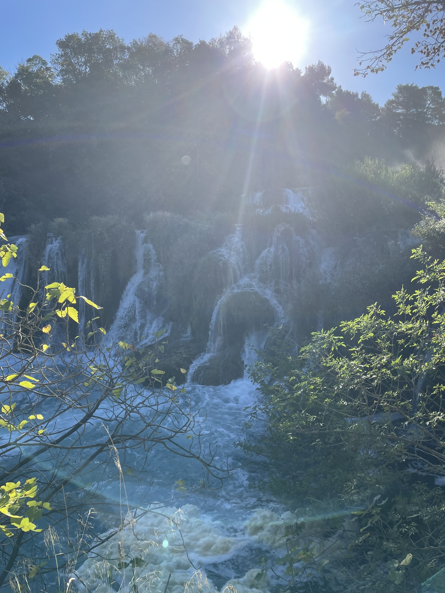 První zastávkou na dlouhé cestě byl Národní park Krka. Studenti po plavbě lodí mohli obdivovat krásné vodní scenérie a vodopády, vše dokreslilo právě vycházející slunce. Po zpáteční plavbě lodí a další hodince v autobuse následovala část hektická – ubytování.