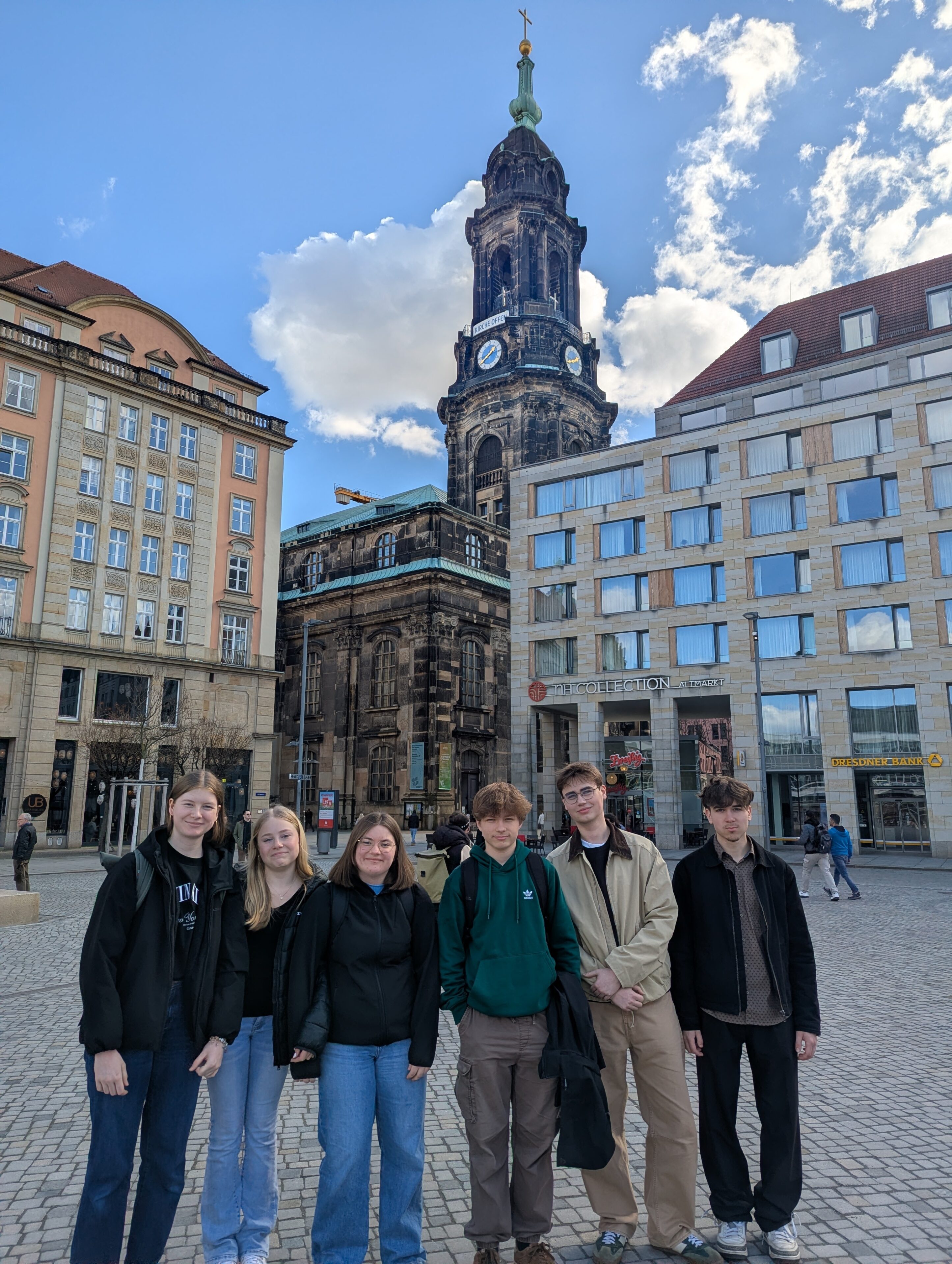 V úterý ráno jsme se zúčastnili vyučování na partnerské škole. Čeští žáci si prohlédli gymnázium a byli rozděleni do různých tříd, kde absolvovali hodiny dějepisu, fyziky, angličtiny, francouzštiny či hudební výchovy. Měli tak jedinečnou příležitost porovnat český a německý školní systém. Současně pracovali na projektech zaměřených na kulturní témata a připravovali otázky, na které v průběhu pobytu hledali odpovědi. Po obědě ve školní jídelně nás němečtí studenti provedli historickým centrem města. Naši žáci tak navštívili mimo jiné areál Zwingeru, znovu vystavěný kostel Frauenkirche, Residenzschloss či Semperovu operu.