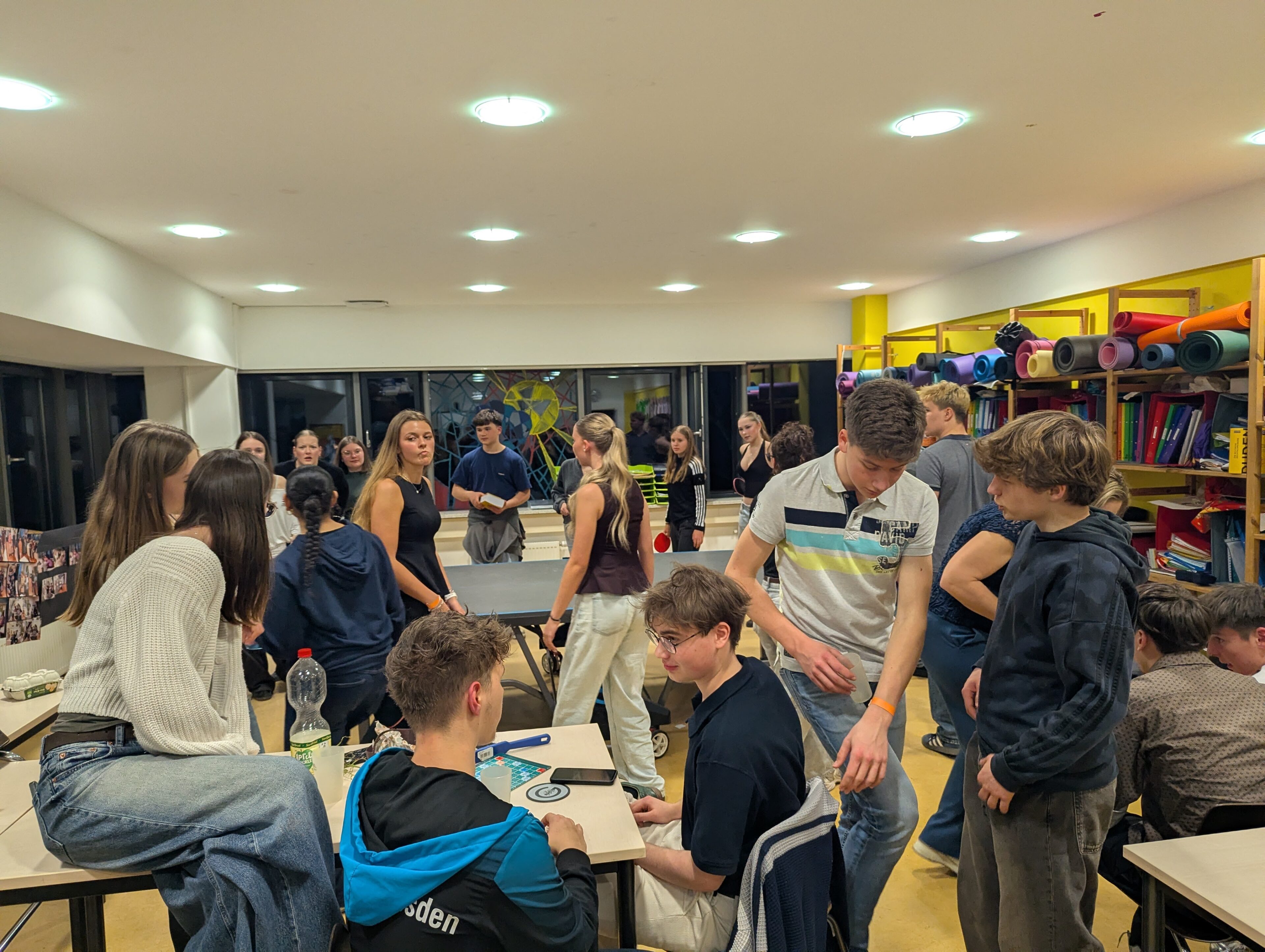 Odpoledne pro nás němečtí studenti připravili společenský večer, během něhož se utvářely poslední dvojice pro výměnný pobyt. Čeští žáci si na oplátku připravili kvíz o České republice a českém jazyce, prezentaci Domažlic i ukázku chodské kultury. Nechyběla ani známá píseň „Ztratila jsem kajdu“ a někteří němečtí studenti si s námi vyzkoušeli i tradiční chodské kolečko. Večer pokračoval neformální zábavou – karaoke, sportovními aktivitami i společnými rozhovory, které naplnily smysl celého pobytu: sdílení zážitků a mezikulturního porozumění.