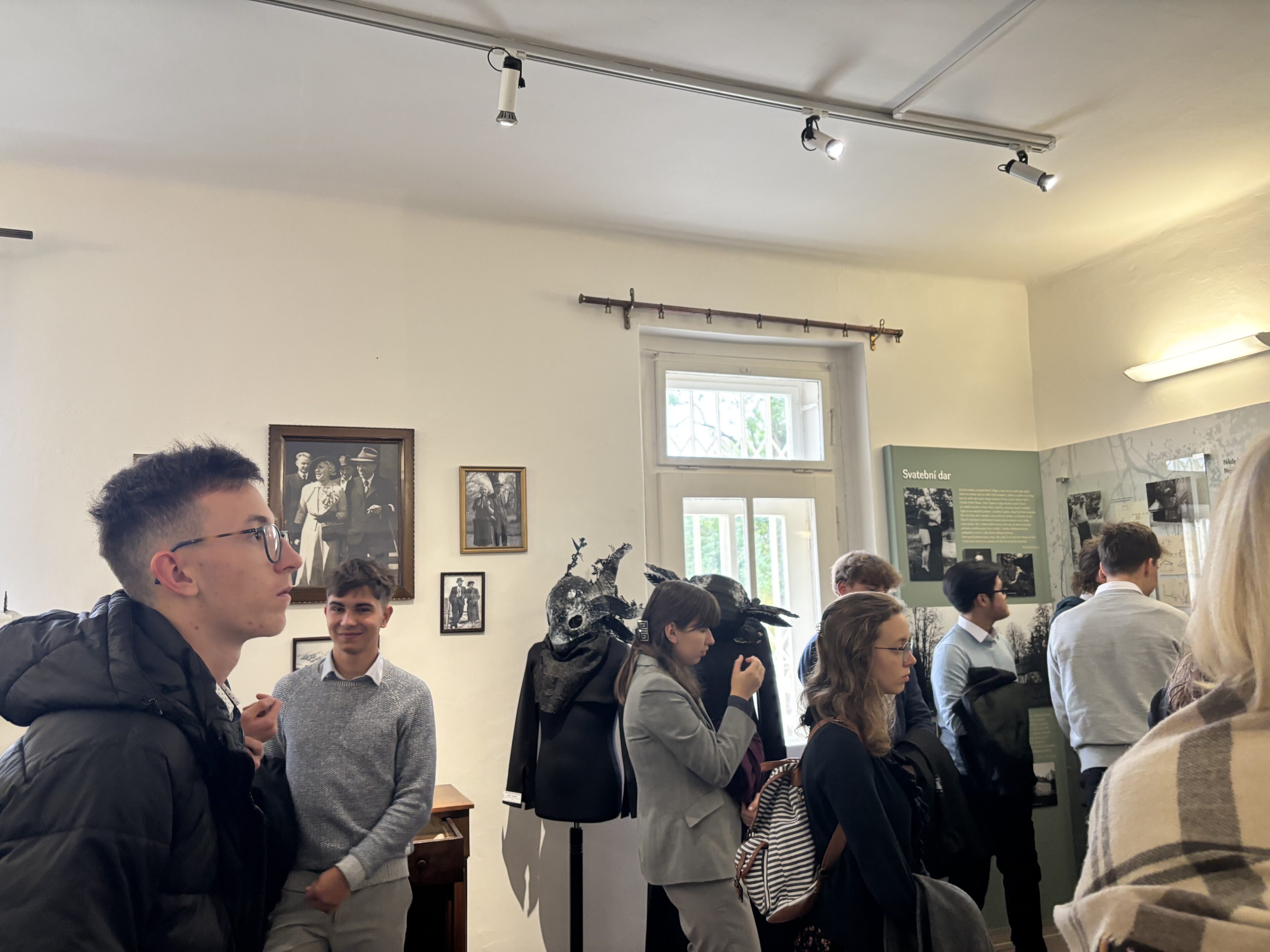 Celý den ale nebyl laděn pouze do depresivní nálady absolutní diktatury. Ráno totiž studenti navštívili památník Karla Čapka ve Staré Huti. „Důležité je tady nasát atmosféru, to že sám pan Čapek procházel těmito místy,” komentuje paní učitelka Černá. A atmosféra tam vládla vskutku skvělá, studenti se při prohlídce nejen leccos dozvěděli, ale dokonce se i nasmáli.